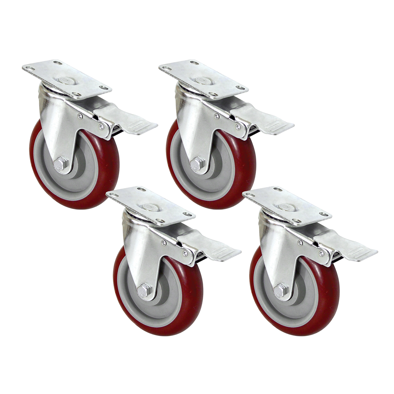 Each caster features smooth swivel rotation with dustproof construction, ensuring quiet, flexible movement even under heavy loads. The easy lock and release brake system provides reliable stability when stationary, keeping your equipment securely in place when needed.