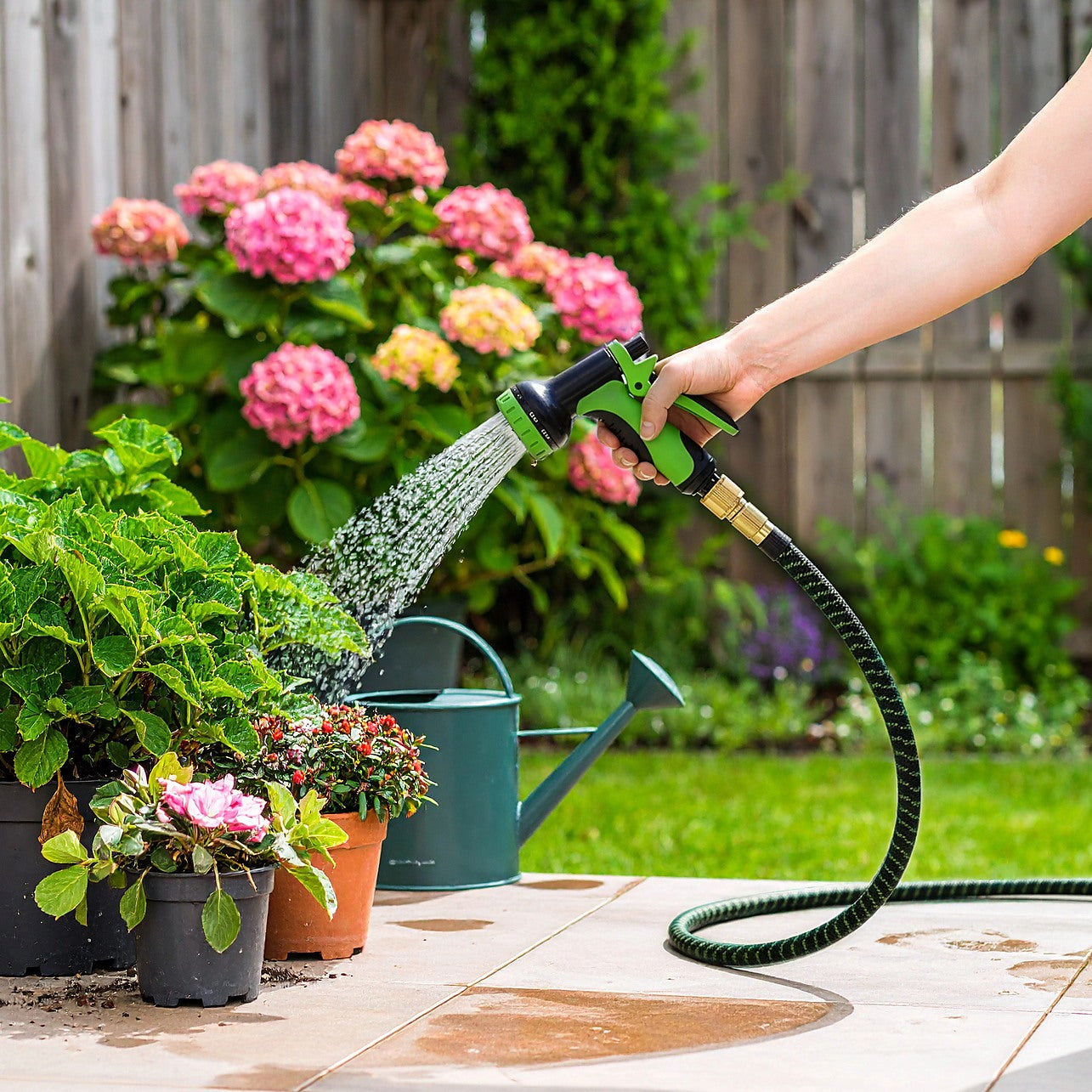 It includes a versatile spray nozzle, offering multiple spray patterns to suit every task—from gentle plant watering to powerful cleaning.
