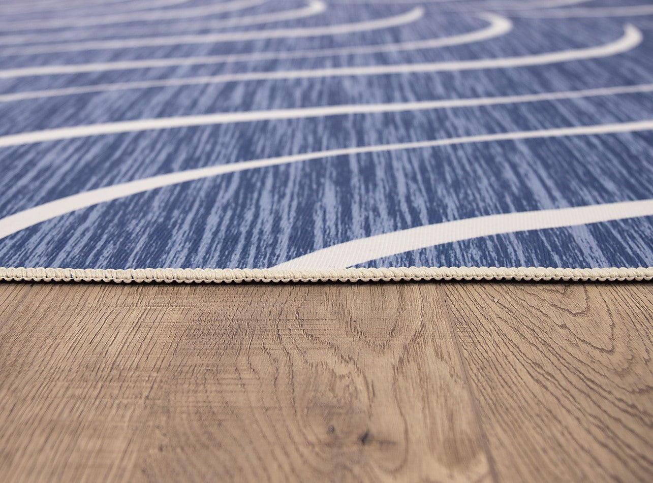 200x300cm Large Floor Blue Wave Lines Rug – Modern Area Carpet for Bedroom, Living Room, Lounge or Home Décor Mat