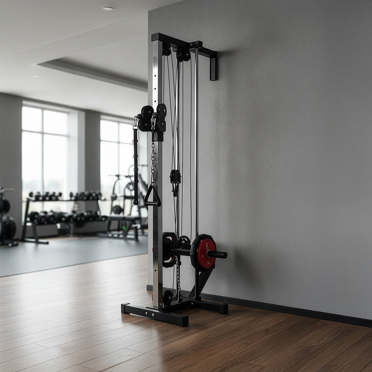 Made from strong, steel frame with a protective powder-coated finish that fends off scratches and rust, this cable tower is equipped with two premium pulleys that can be effortlessly adjusted to varying heights, facilitating a wide spectrum of exercises, from cable crossovers to lat pulldowns.