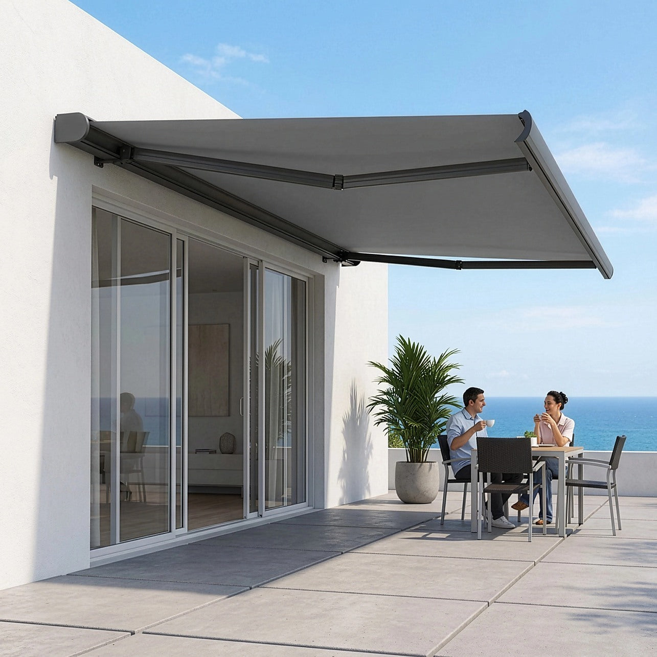 Whether you're creating a shaded retreat or enhancing your outdoor entertaining area, this motorised full cassette awning delivers modern style, reliable performance, and year-round comfort.