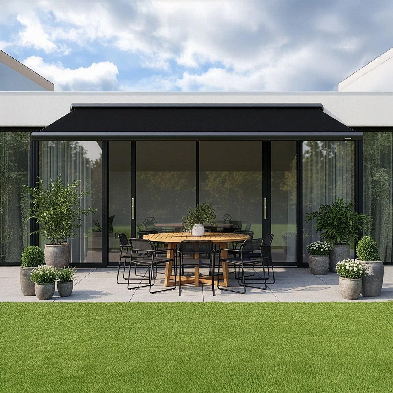 Modern Black Fabric – Stylish and neutral colour complements most exterior designs, blending seamlessly with modern homes and outdoor décor.