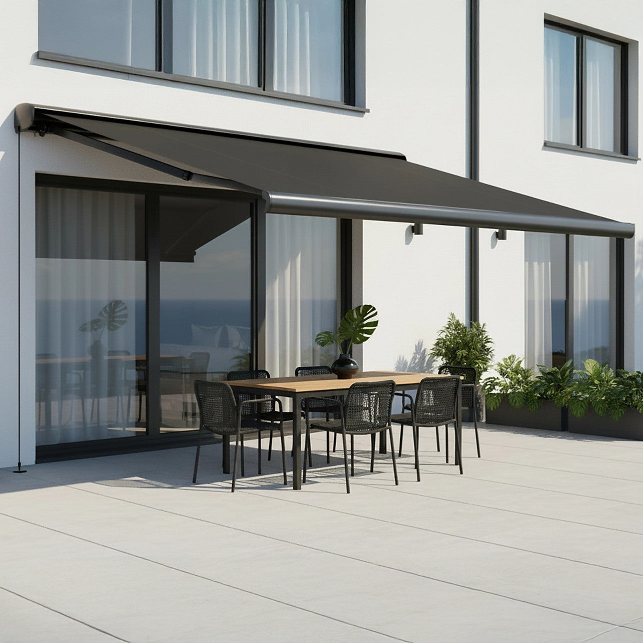 Whether you're creating a shaded retreat or enhancing your outdoor entertaining area, this motorised full cassette awning delivers modern style, reliable performance, and year-round comfort.
