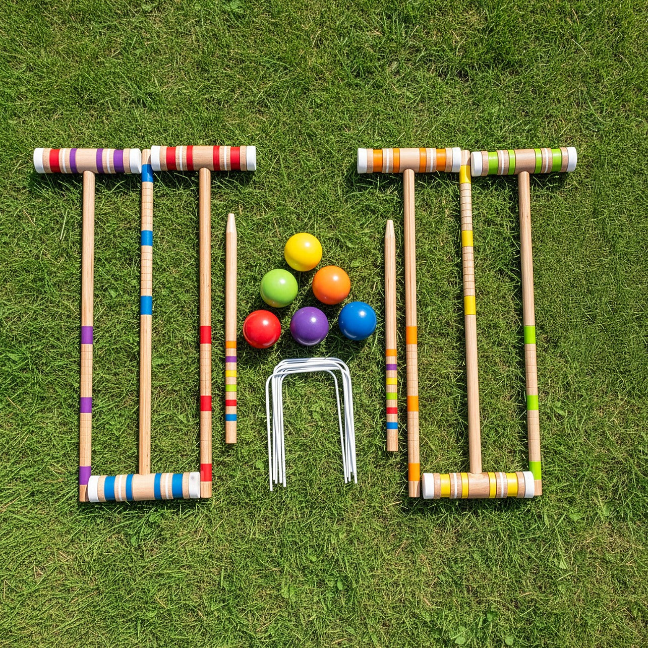 This platinum set includes six (6) different, colour coded mallets and balls and six vinyl coated steel wicket hoops - all you'll ever need to play the game as you knock your respective balls through the hoops to score a win!