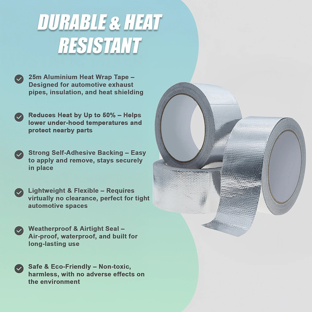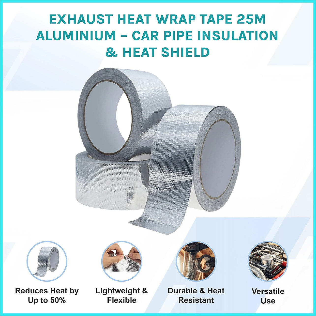 - 25m Aluminium Heat Wrap Tape – Designed for automotive exhaust pipes, insulation, and heat shielding