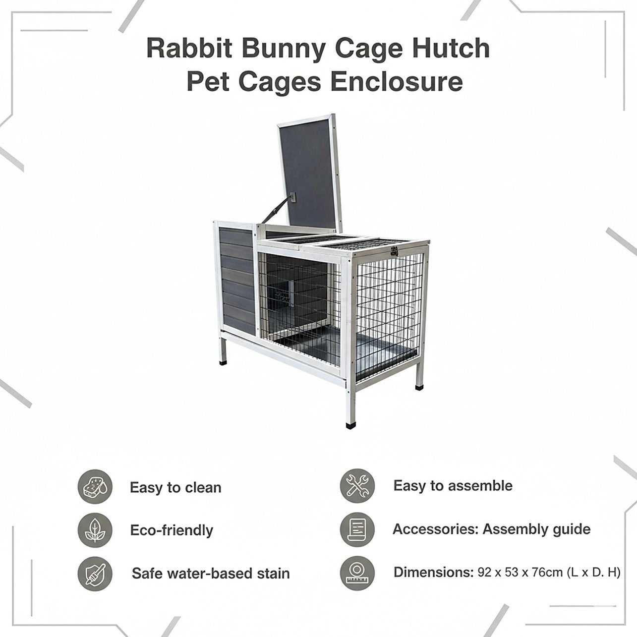 Make it a family affair the minute the box arrives at your door. With an easy-to-follow step-by-step assembly guide, even DIY newbies can put this hutch together. Get the kids involved, too. They'll learn valuable life skills and make memories that last a lifetime. Whether it's helping to put the hutch together or taking care of the pets inside, your kids will have a world of fun while learning responsibility. With its easy-clean, pull-out plastic tray, clean-up is a breeze. And, its homey grey-and-white colour palette and rustic design will look fantastic in your backyard or garden. Don't miss out on this opportunity to bond your family together as you take care of your small outdoor pets. Order yours today.