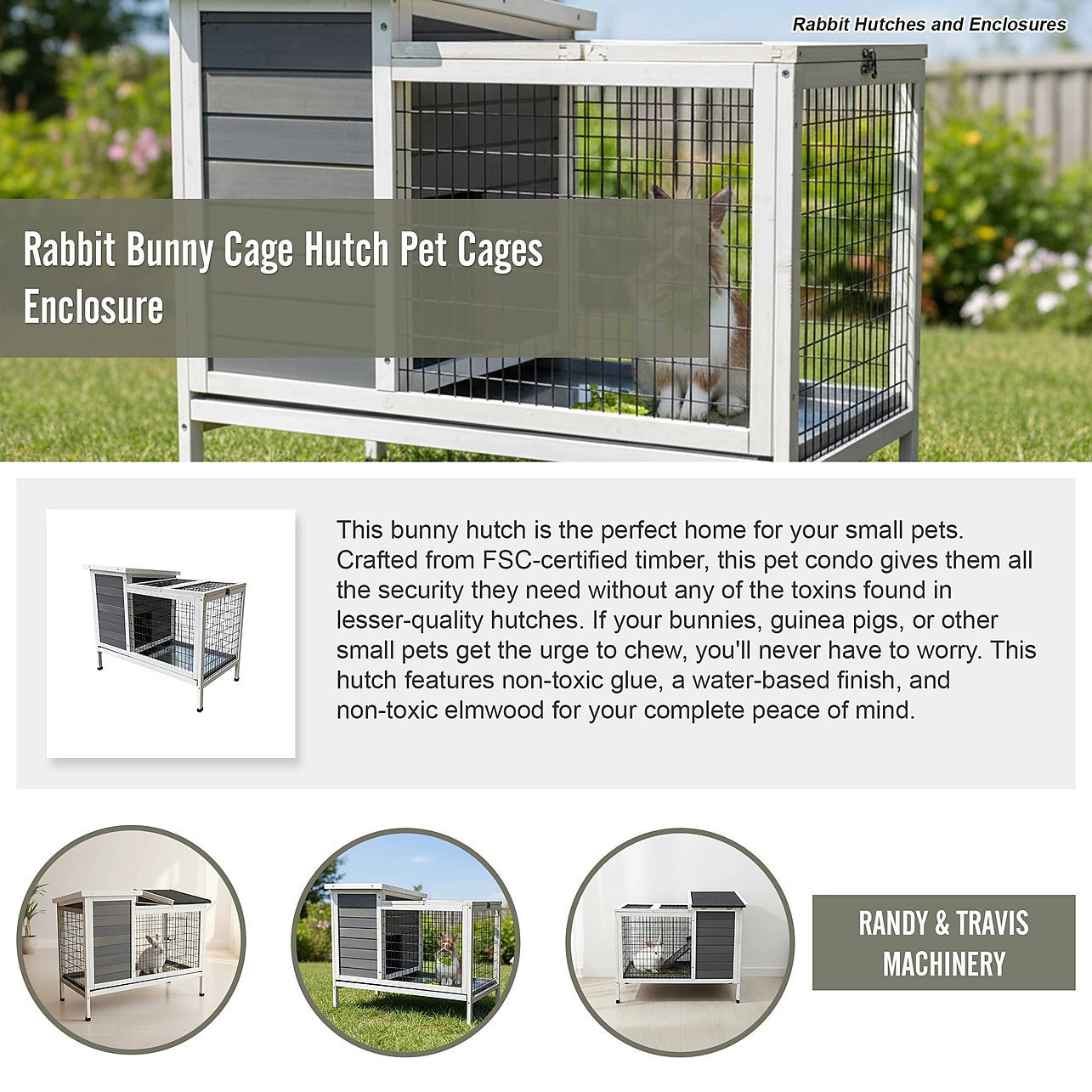 Have some furry friends that live outside but need a place where they can eat, sleep, and nest without worries about predators? Rabbits and other small creatures need a habitat where they feel safe and sound, yet one where they can enjoy the benefits of being out in nature. This bunny hutch is the perfect home for your small pets. Crafted from FSC-certified timber, this pet condo gives them all the security they need without any of the toxins found in lesser-quality hutches. If your bunnies, guinea pigs, or other small pets get the urge to chew, you'll never have to worry. This hutch features non-toxic glue, a water-based finish, and non-toxic elmwood for your complete peace of mind.
