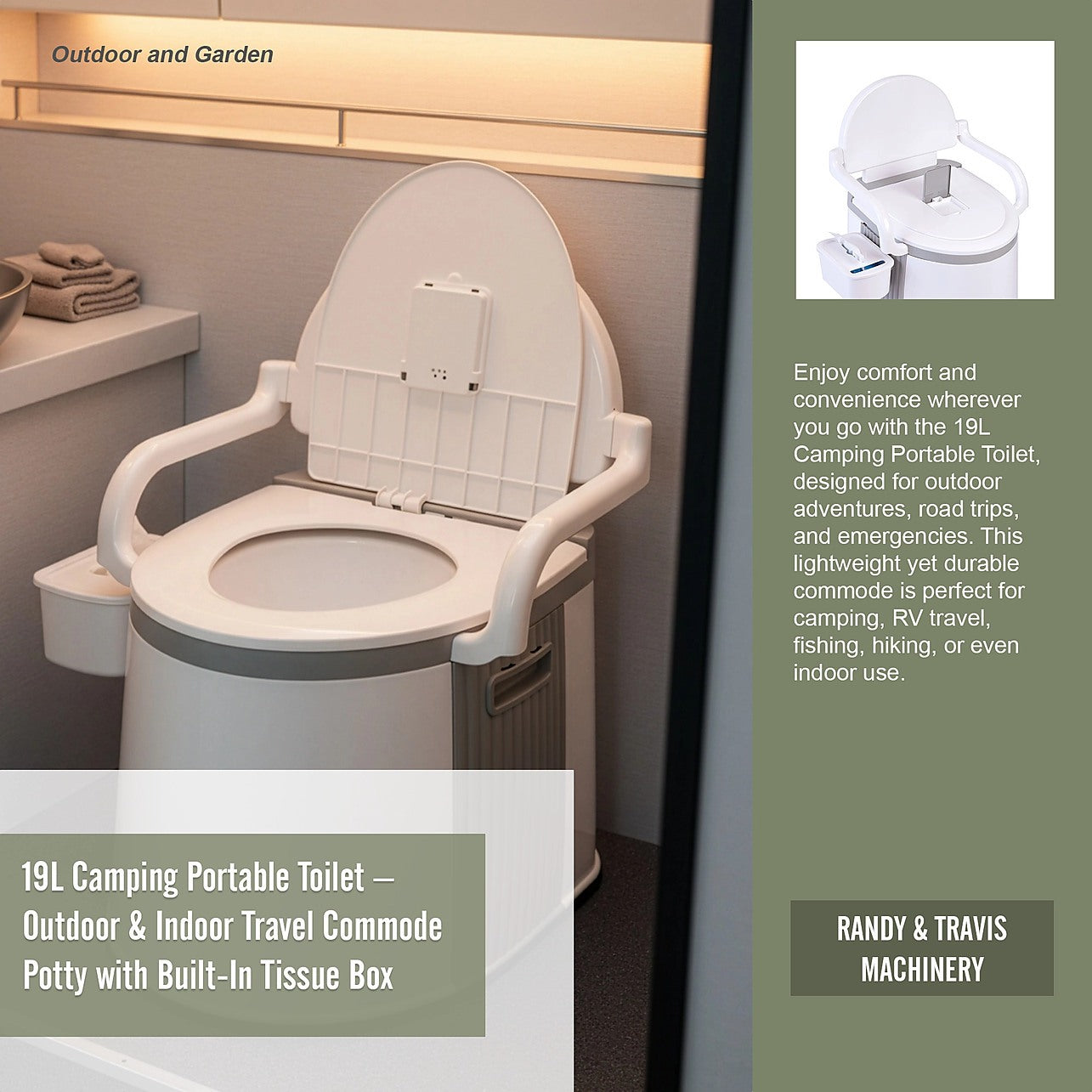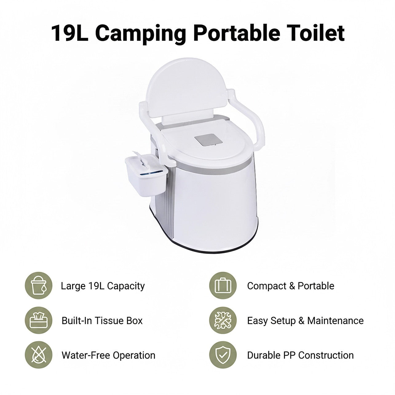 19L Camping Portable Toilet – Outdoor & Indoor Travel Commode Potty with Tissue Box
