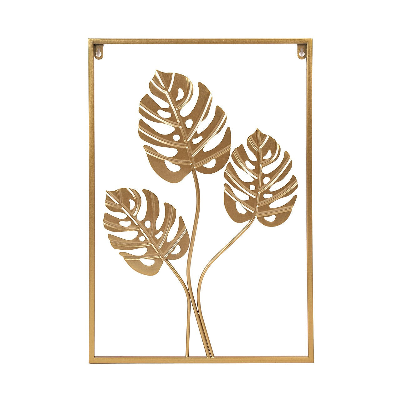Metal Wall Picture with Leaves 40 x 60 cm Golden Decoration