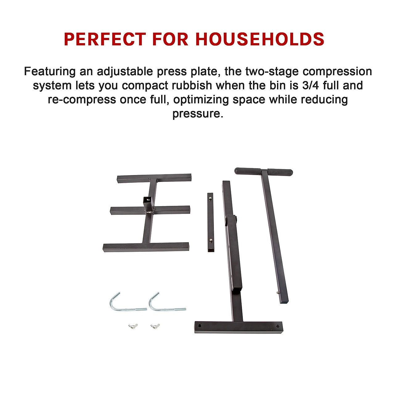 Featuring an adjustable press plate, the two-stage compression system lets you compact rubbish when the bin is 3/4 full and re-compress once full, optimizing space while reducing pressure. The adjustable height (30cm to 40cm) ensures versatility for different waste levels, making it perfect for households, gardens, and recyclables.