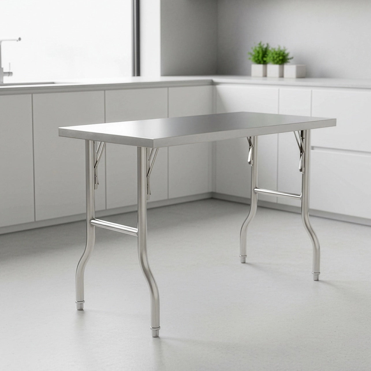 122x61cm Stainless Steel Folding Kitchen Bench – Commercial Prep Work Table