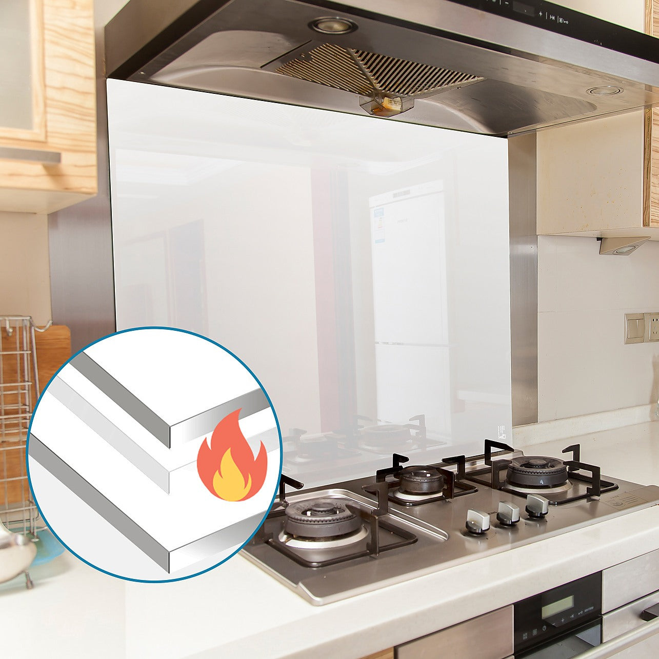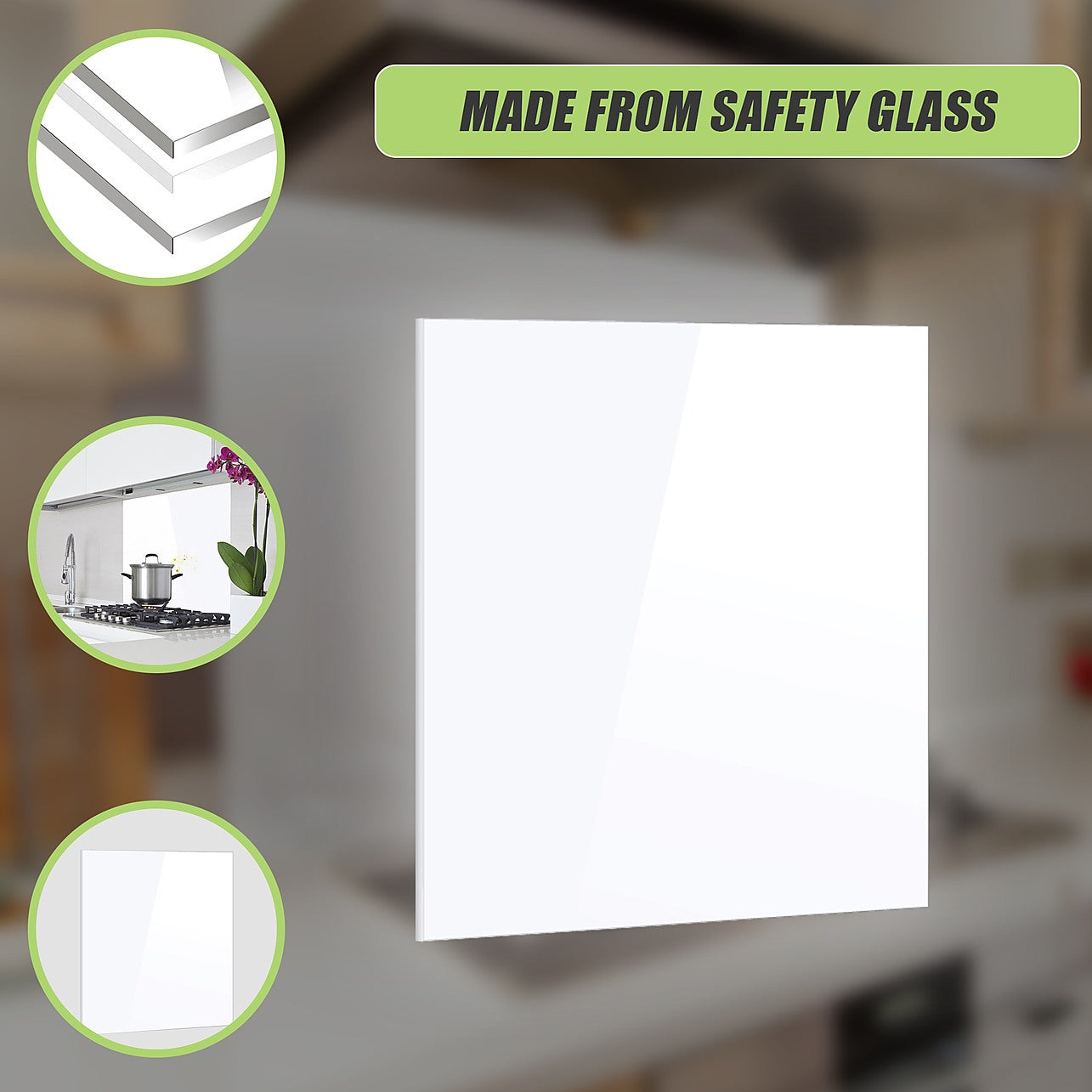 Toughened 90 x 70cm White Glass Kitchen Splashback – Modern Heat-Resistant Design for Homes