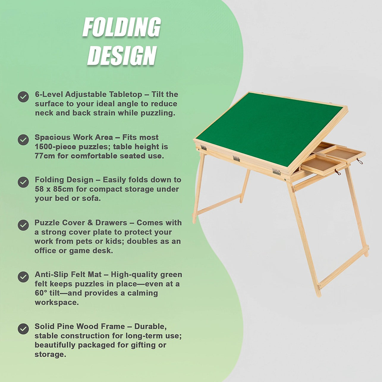 - Puzzle Cover & Drawers – Comes with a strong cover plate to protect your work from pets or kids; doubles as an office or game desk.