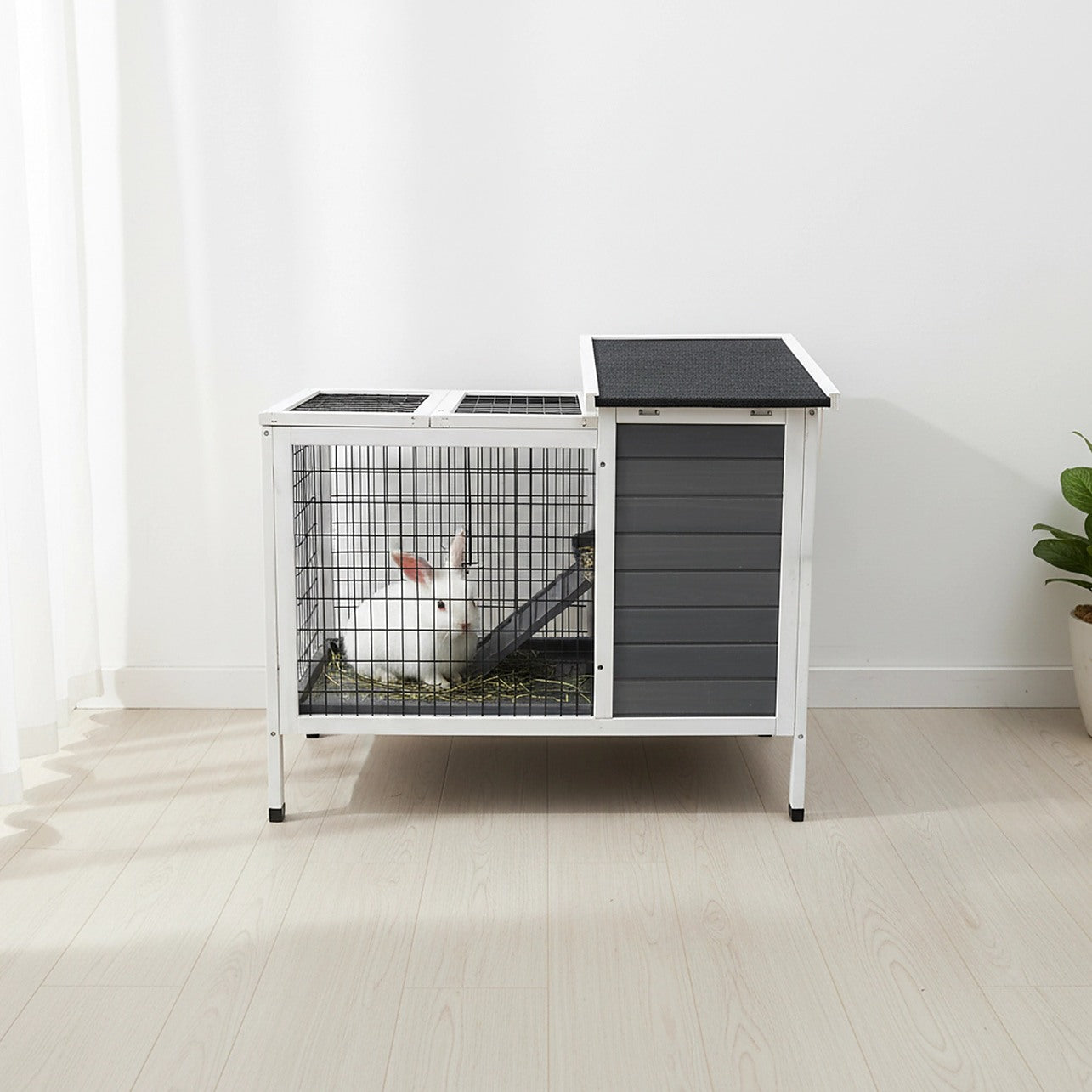 Make it a family affair the minute the box arrives at your door. With an easy-to-follow step-by-step assembly guide, even DIY newbies can put this hutch together. Get the kids involved, too. They'll learn valuable life skills and make memories that last a lifetime. Whether it's helping to put the hutch together or taking care of the pets inside, your kids will have a world of fun while learning responsibility. With its easy-clean, pull-out plastic tray, clean-up is a breeze. And, its homey grey-and-white colour palette and rustic design will look fantastic in your backyard or garden. Don't miss out on this opportunity to bond your family together as you take care of your small outdoor pets. Order yours today.