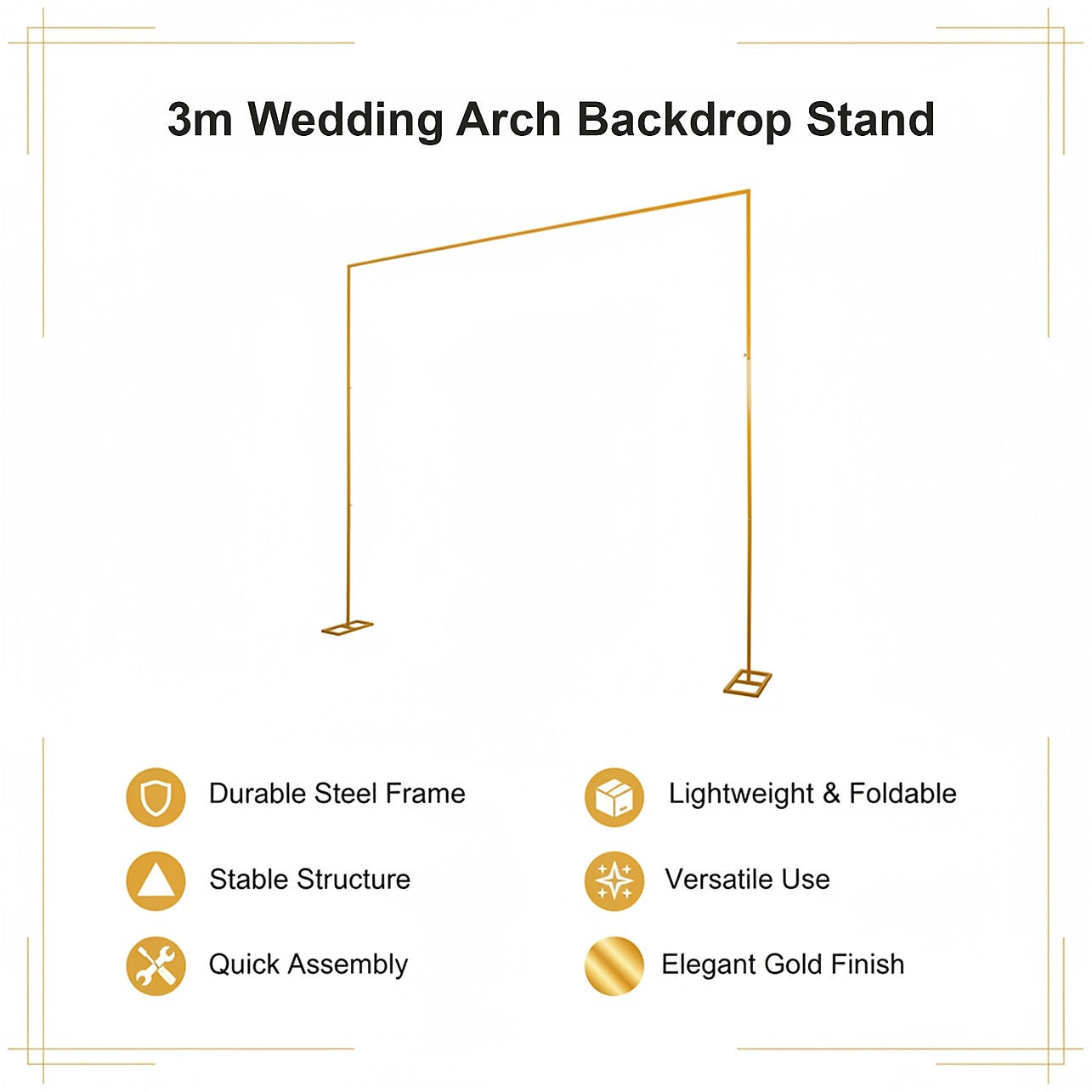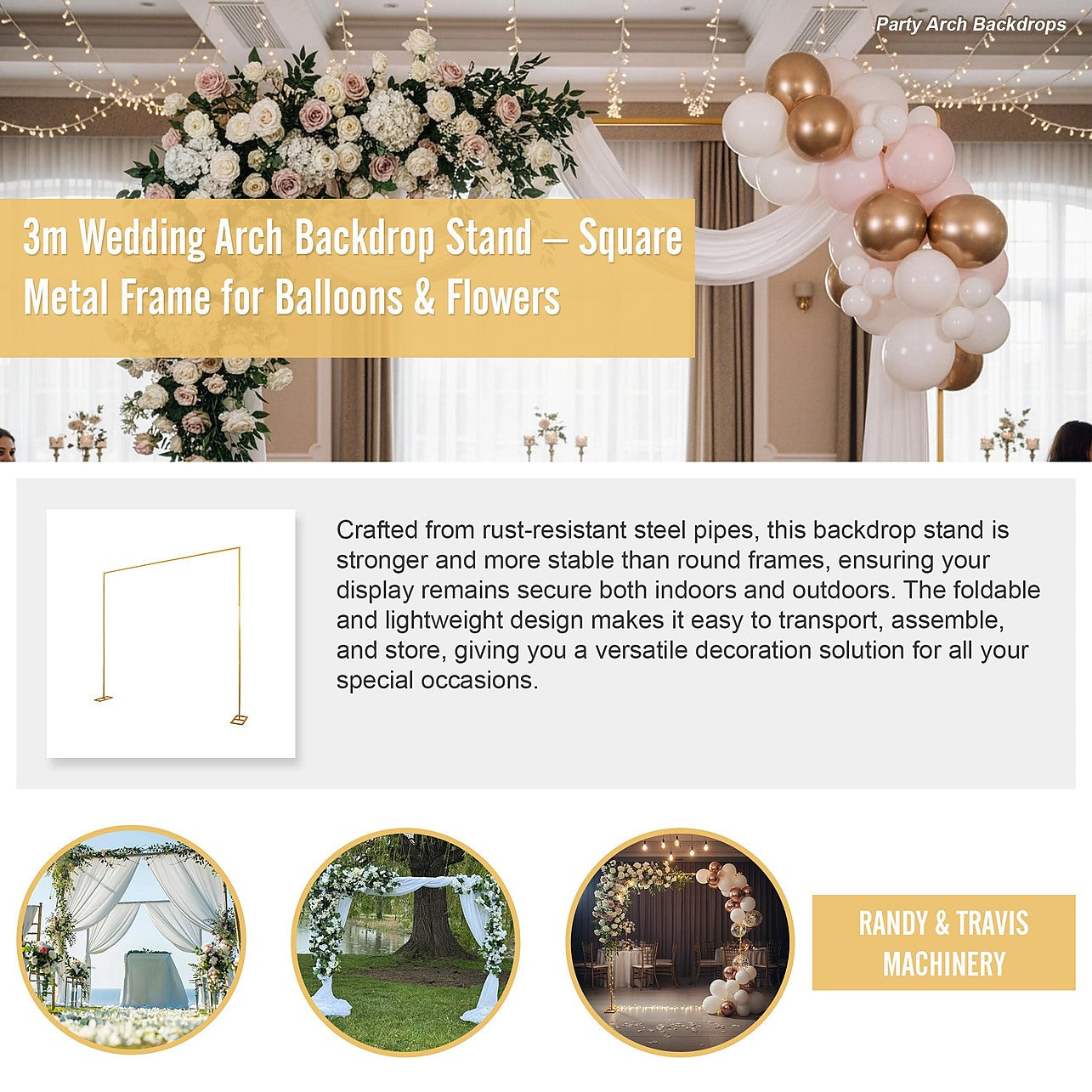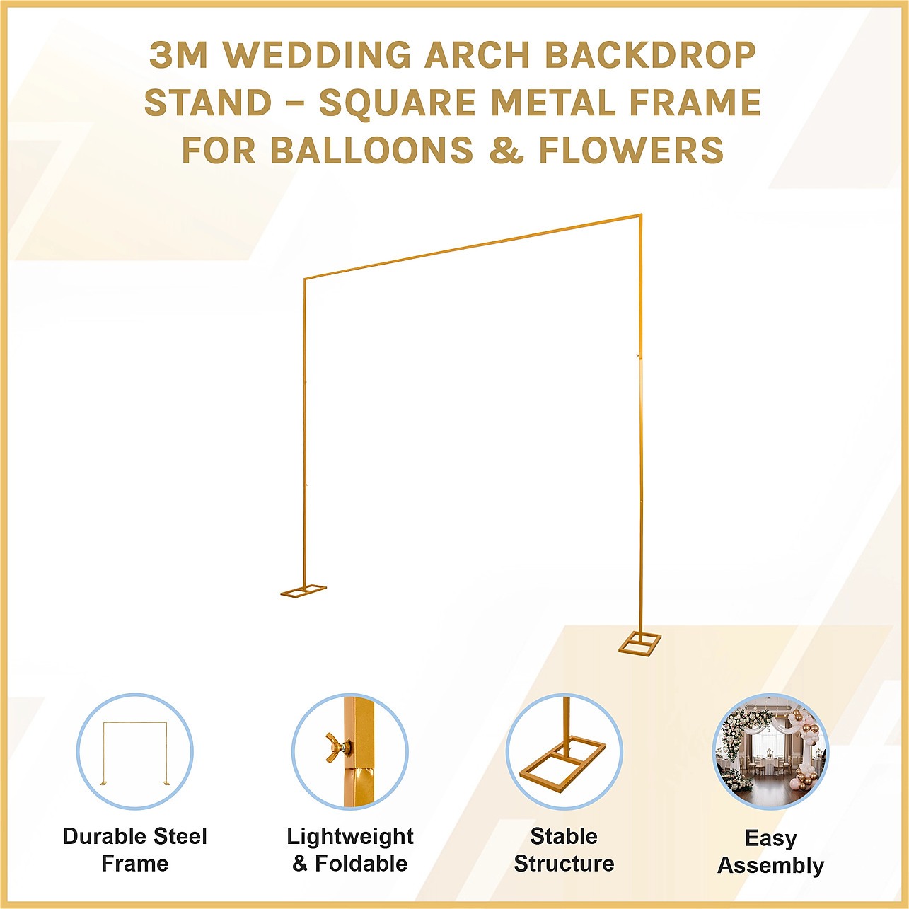 3m Wedding Arch Backdrop Stand – Square Metal Frame for Balloons, Flowers & Events
