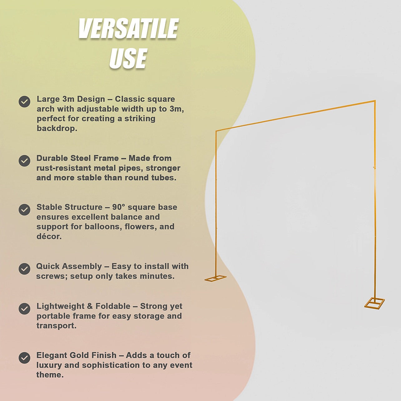 - Large 3m Design – Classic square arch with adjustable width up to 3m, perfect for creating a striking backdrop.