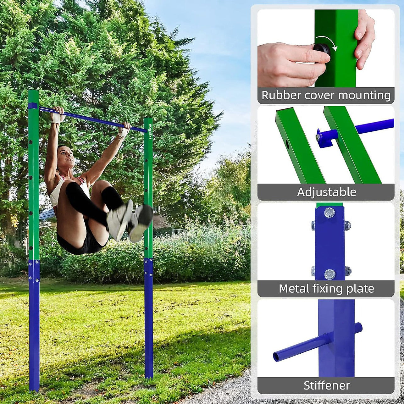 Whether you're training upper body strength, practicing gymnastics, or encouraging kids to stay active outdoors, this height adjustable outdoor fitness bar is the perfect addition to your home gym or backyard.