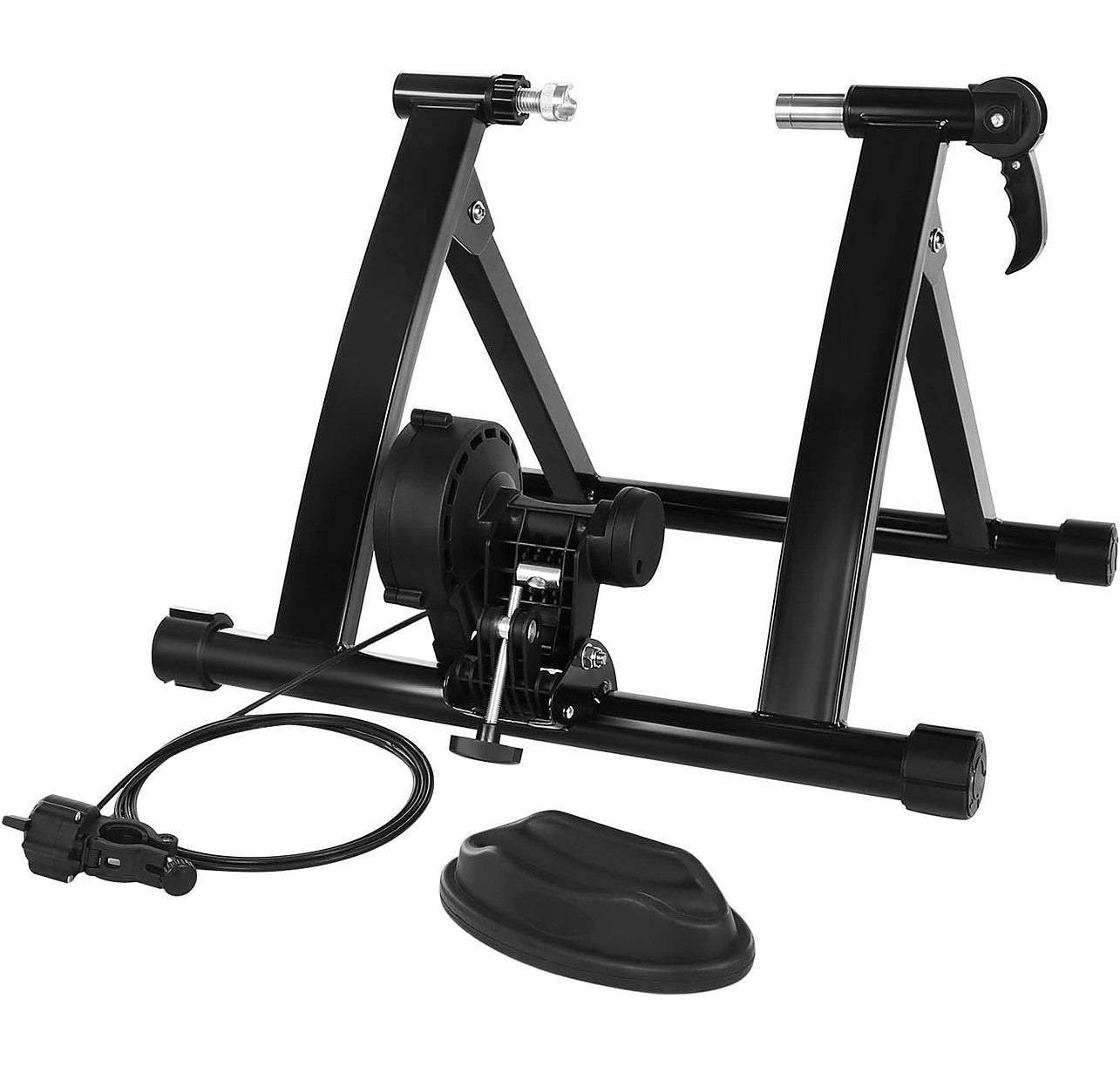 With 6 adjustable resistance levels, you can simulate everything from flat roads to steep hill climbs, giving you the flexibility to build stamina, improve cardio endurance, and strengthen muscles. Built from a powder-coated rustproof steel frame, it's sturdy, durable, and compatible with a wide range of wheel sizes. Perfect for home workouts, this indoor trainer helps you ride comfortably while avoiding traffic and unpredictable weather.