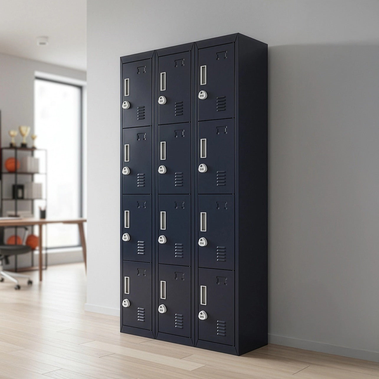 12 lockable compartments – perfect for offices, gyms, schools, and industrial use