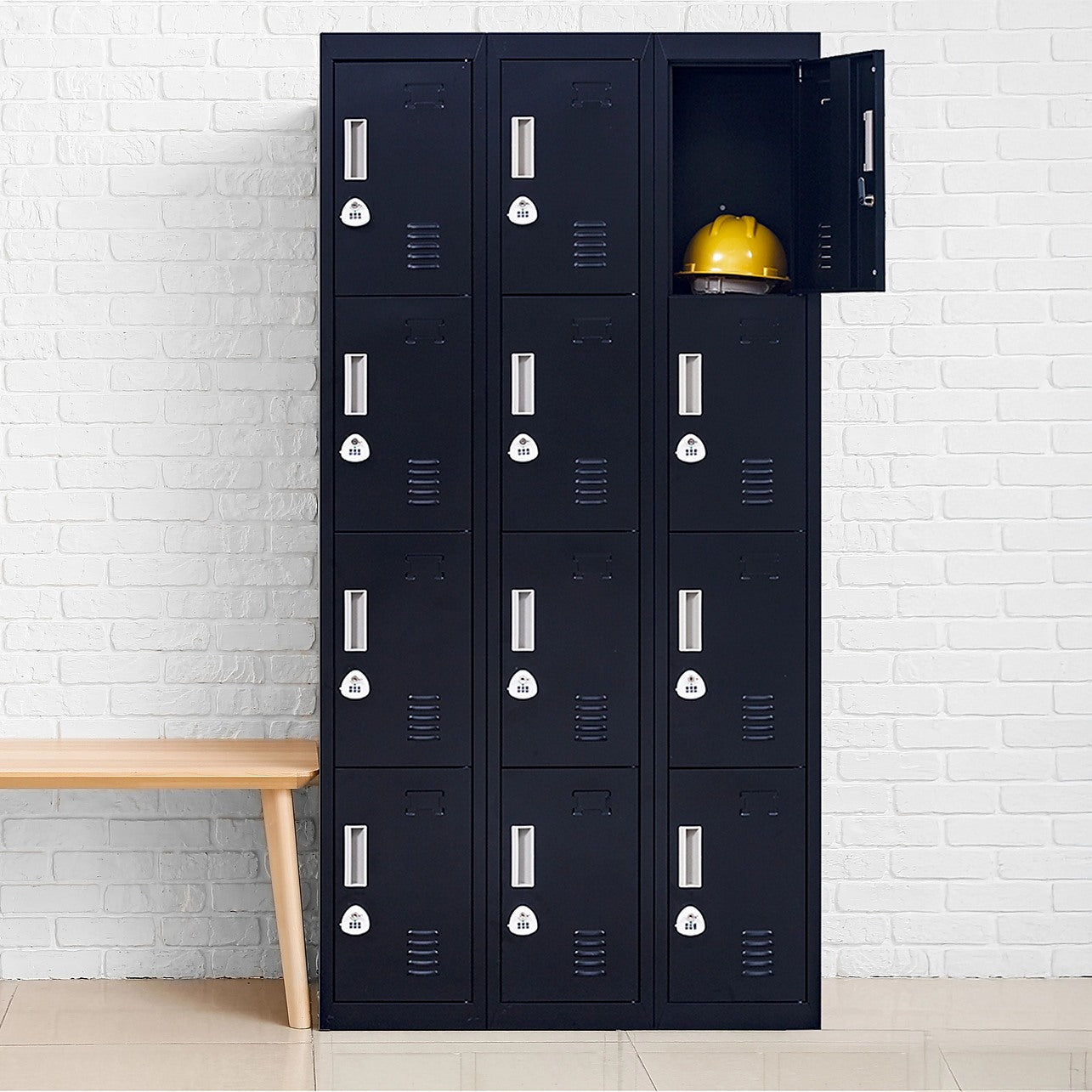 12-Door Locker – Black with 3-Digit Combination Lock | Secure Storage for Office, Gym or School Use