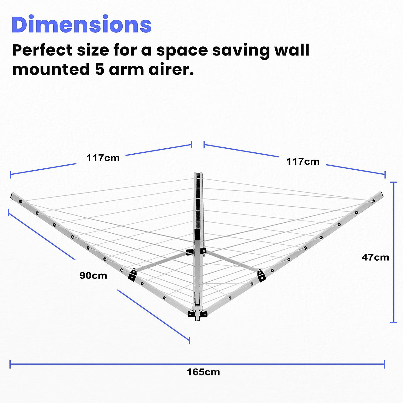 24m Folding Dryer for Laundry & Washing - Wall Mounted 5 Arm Clothes Airer