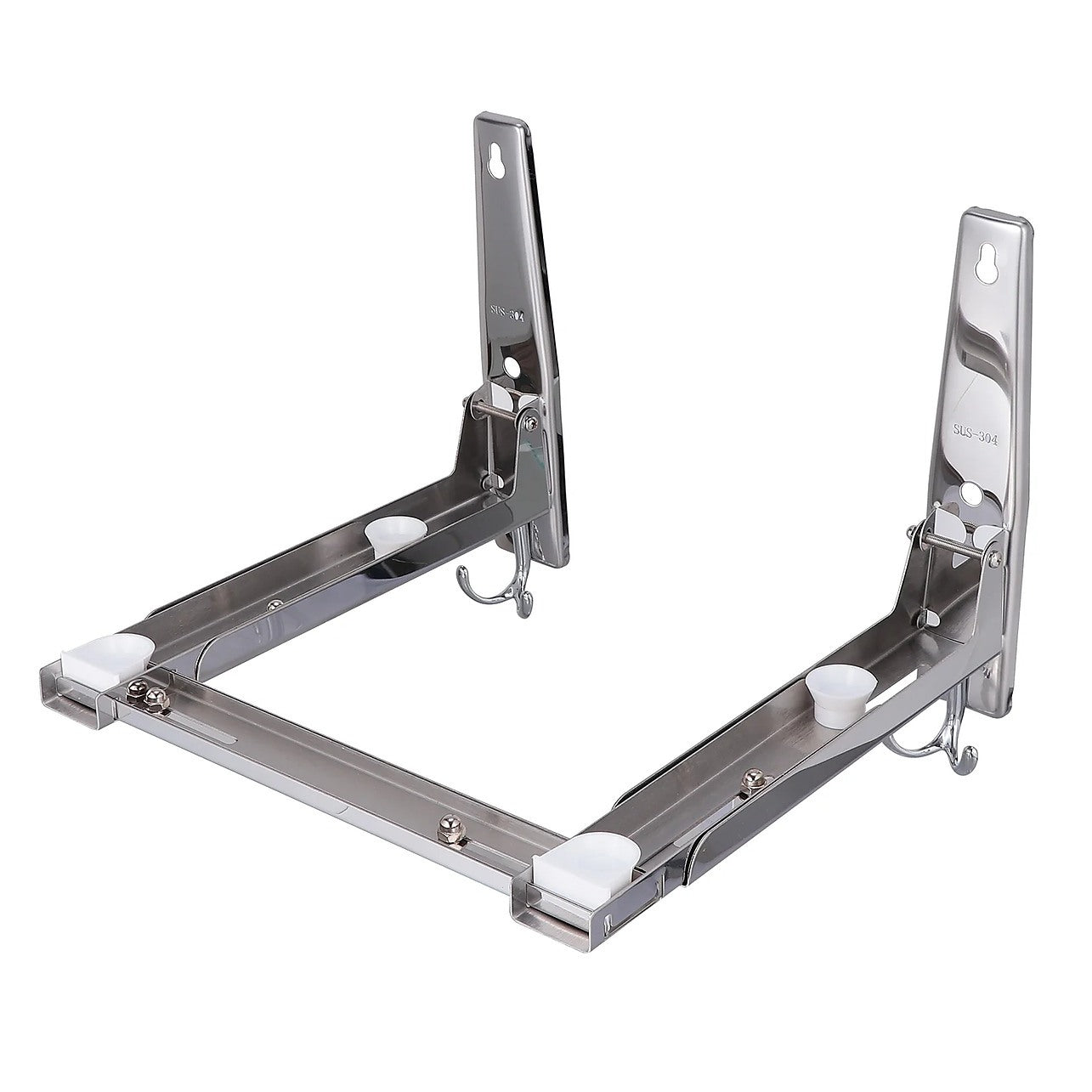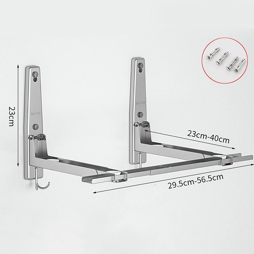 Stainless Steel Microwave Oven Wall Mount Bracket – Adjustable Shelf with Removable Hooks