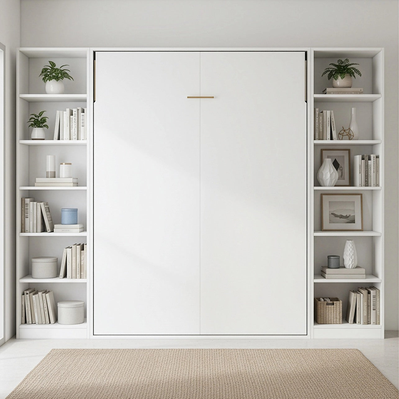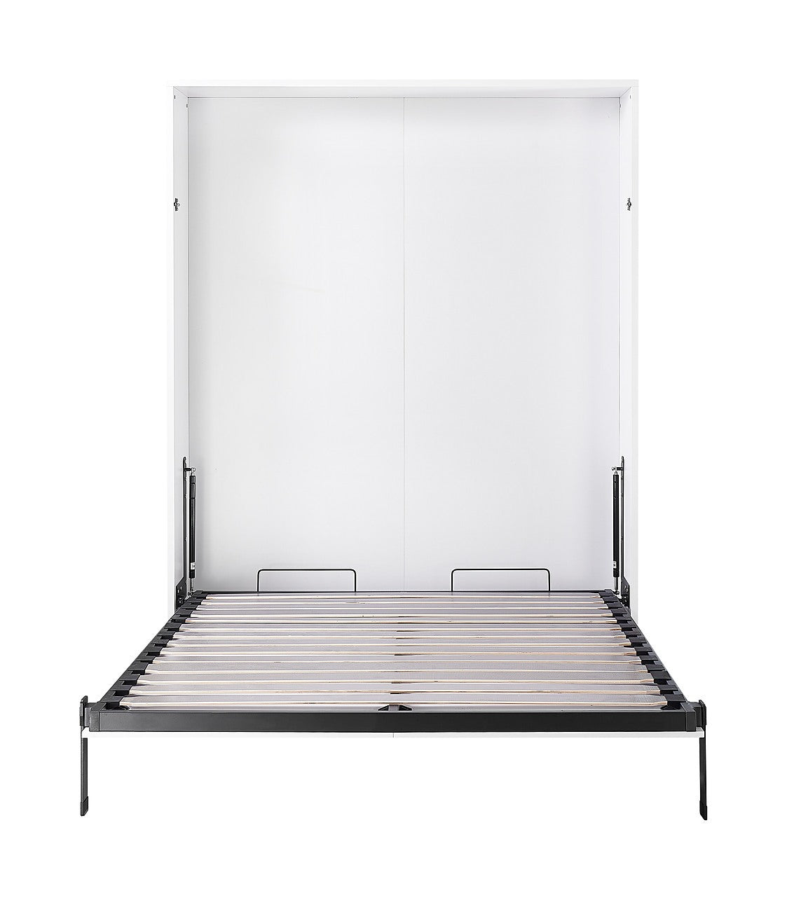 Queen Wall Bed in White – Space Saving Murphy Bed Kit with Black Door Handle