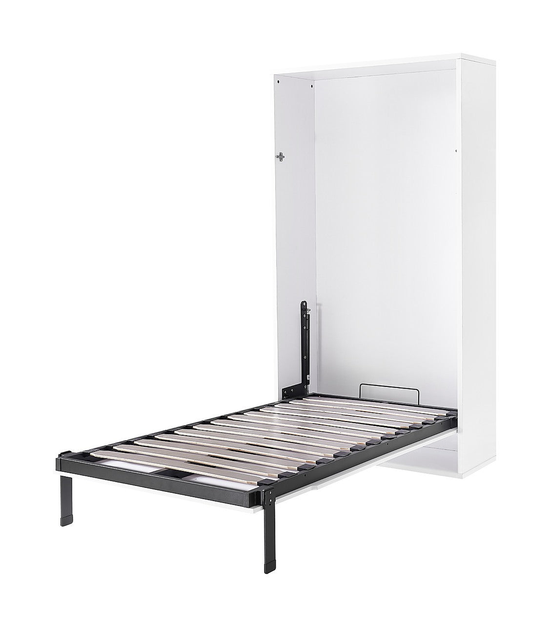 Single Wall Bed in White – Space Saving Murphy Bed Kit with Black Door Handle