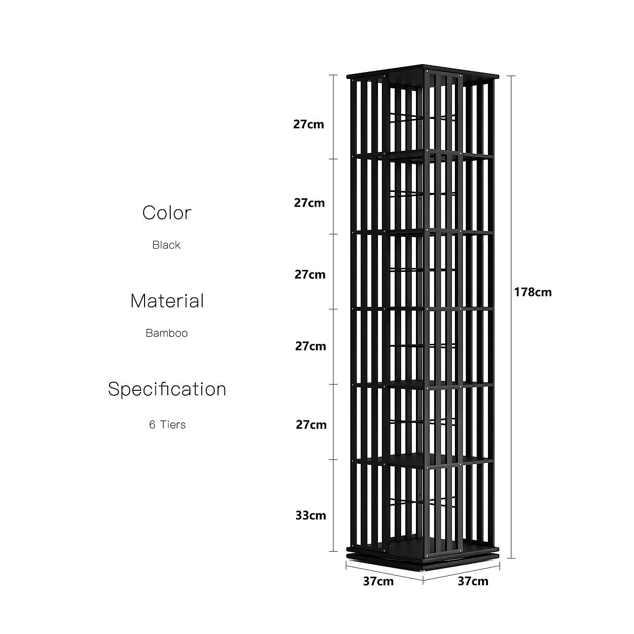- Dimensions (completely assembled): 37 x 37 x 178cm (L x W x H)