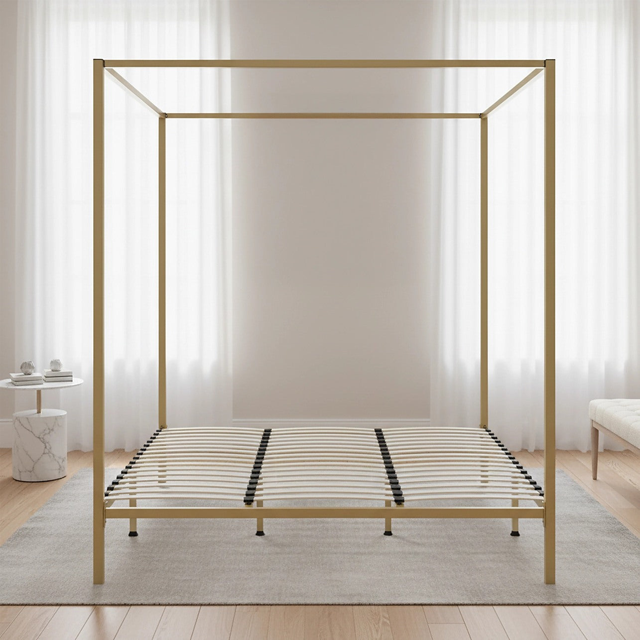 4-Poster King Bed Frame – Sturdy Gold Modern Canopy Bed for Bedroom
