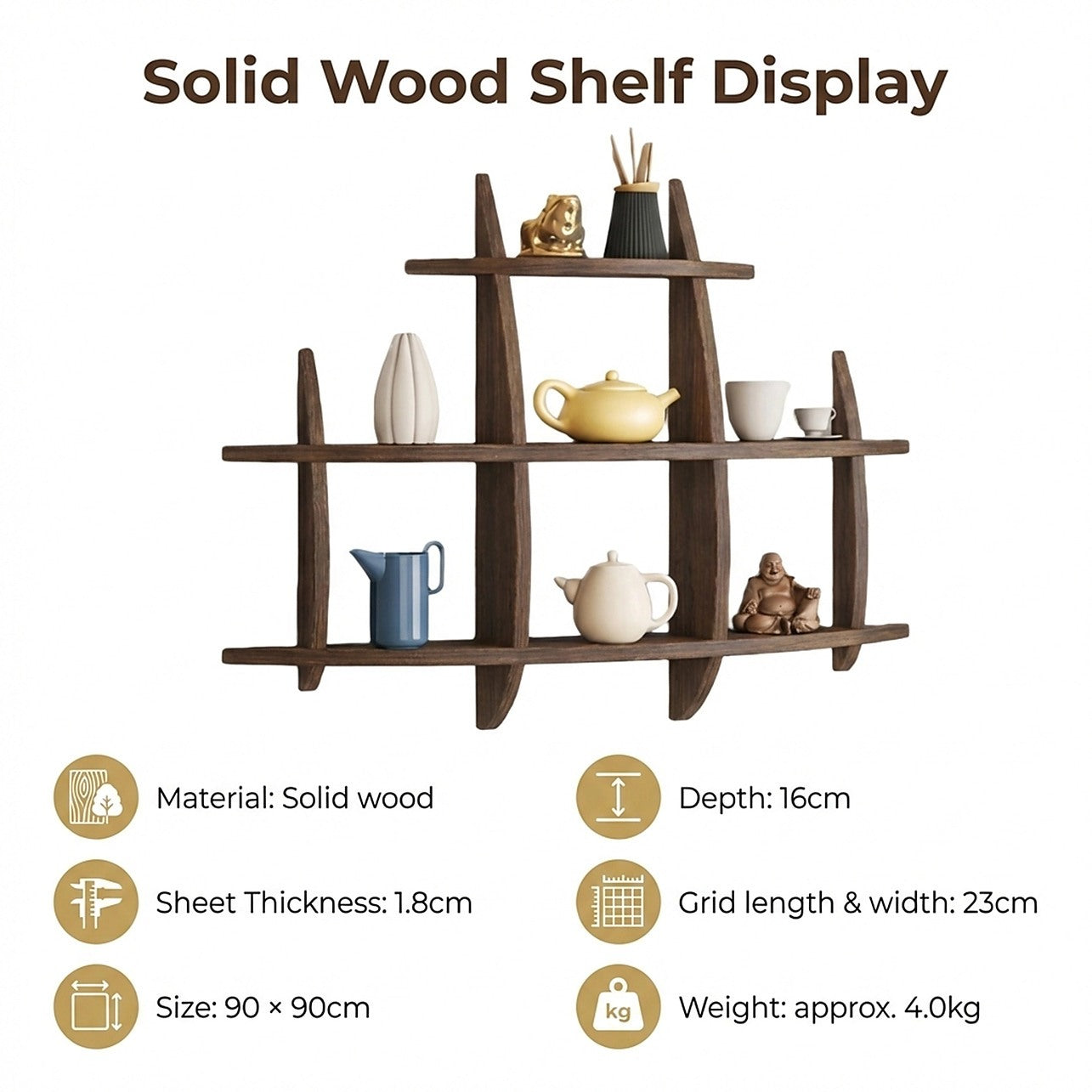 90x90cm Solid Wood Wall Mounted Display Shelf in Antique Style for Home Décor