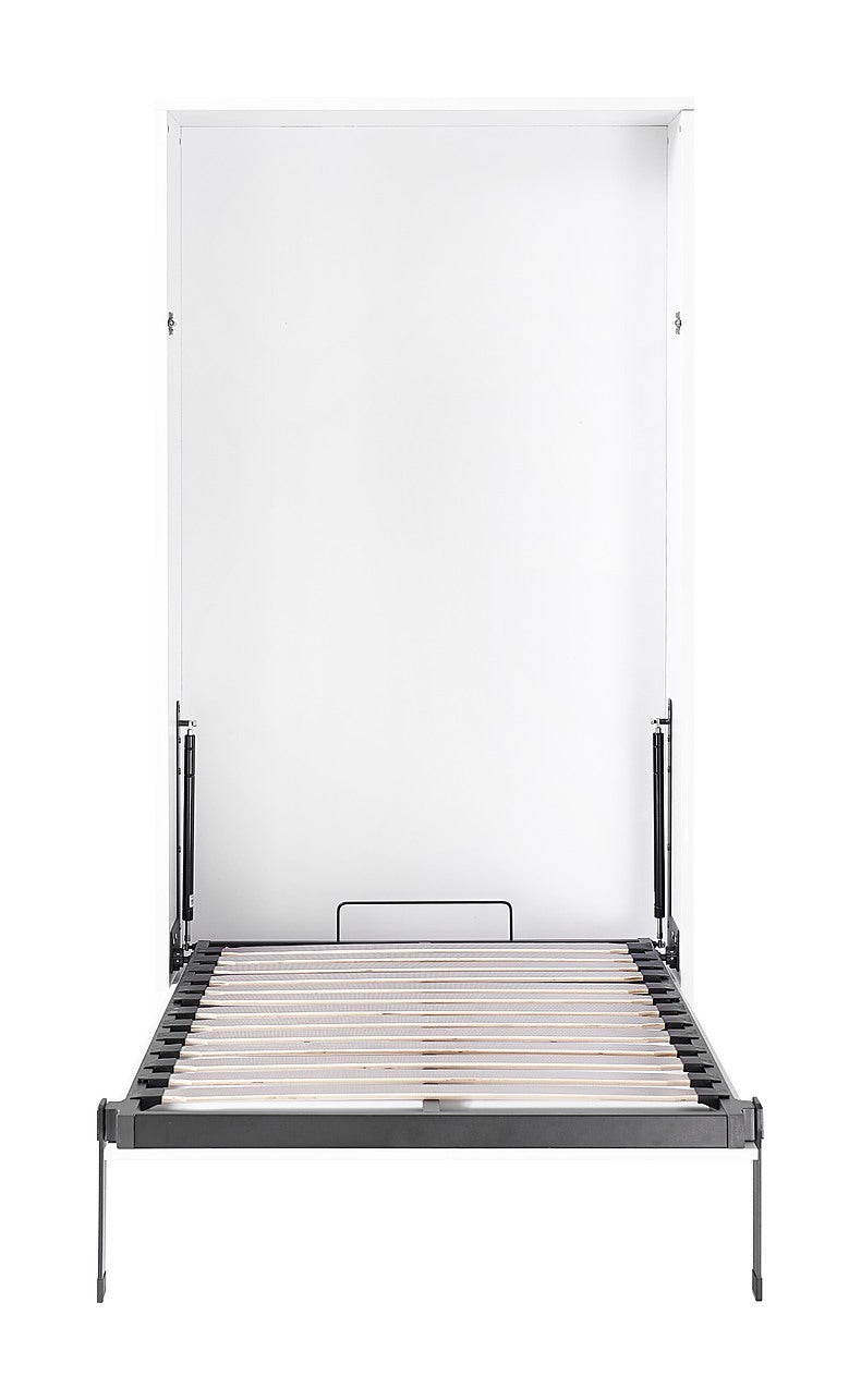 Single Wall Bed in White – Space Saving Murphy Bed Kit with Gold Door Handle