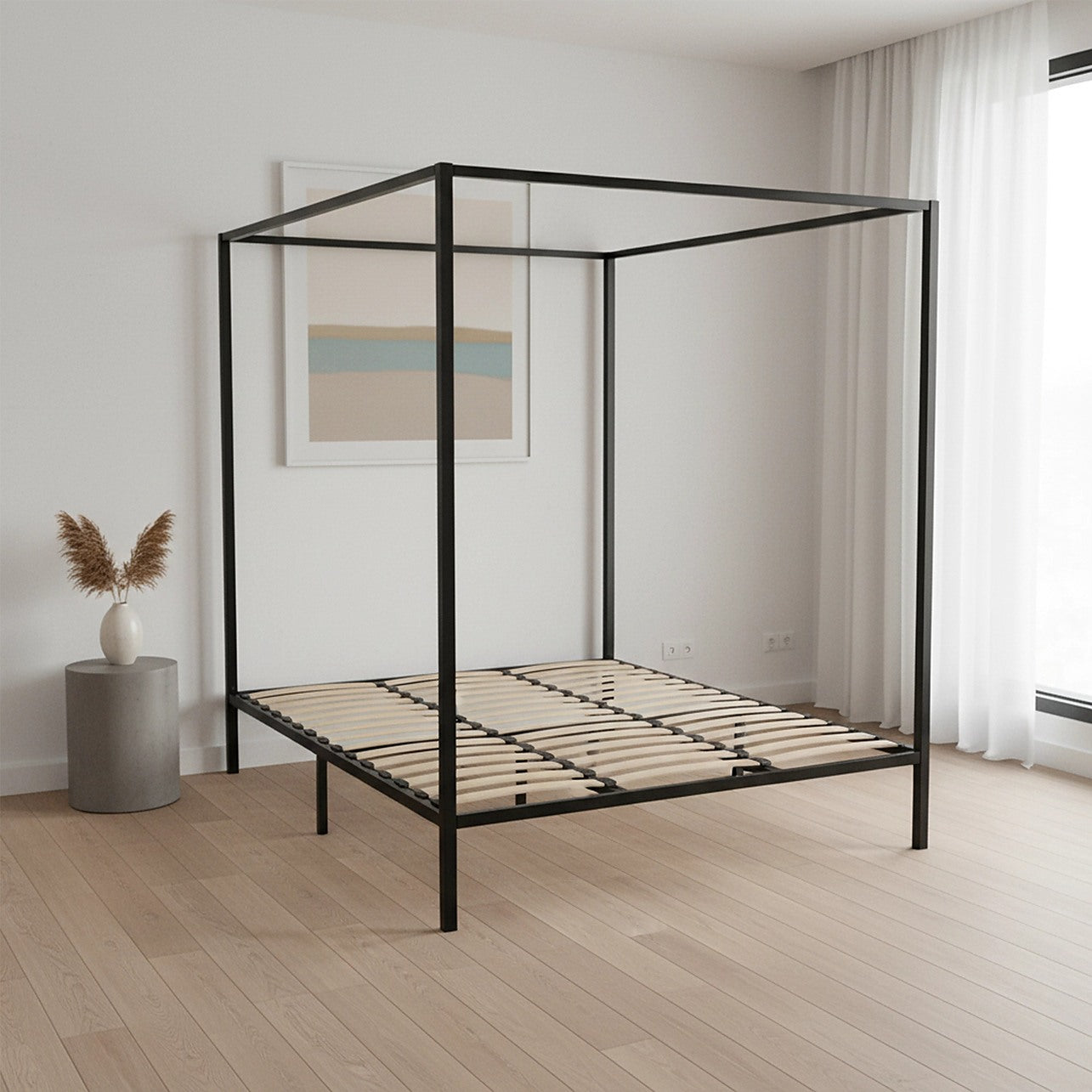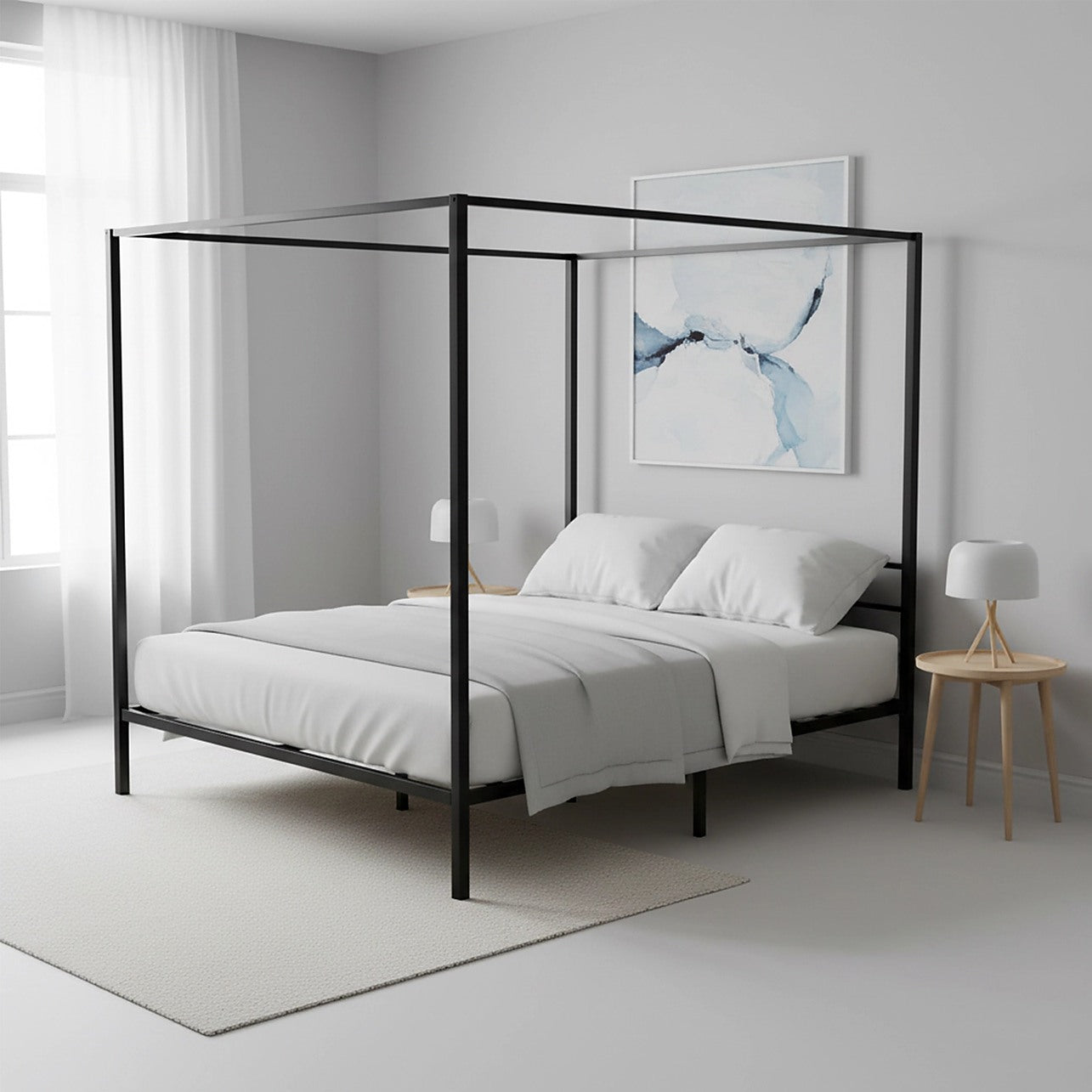 4-Poster King Bed Frame – Sturdy Black Modern Canopy Bed for Bedroom