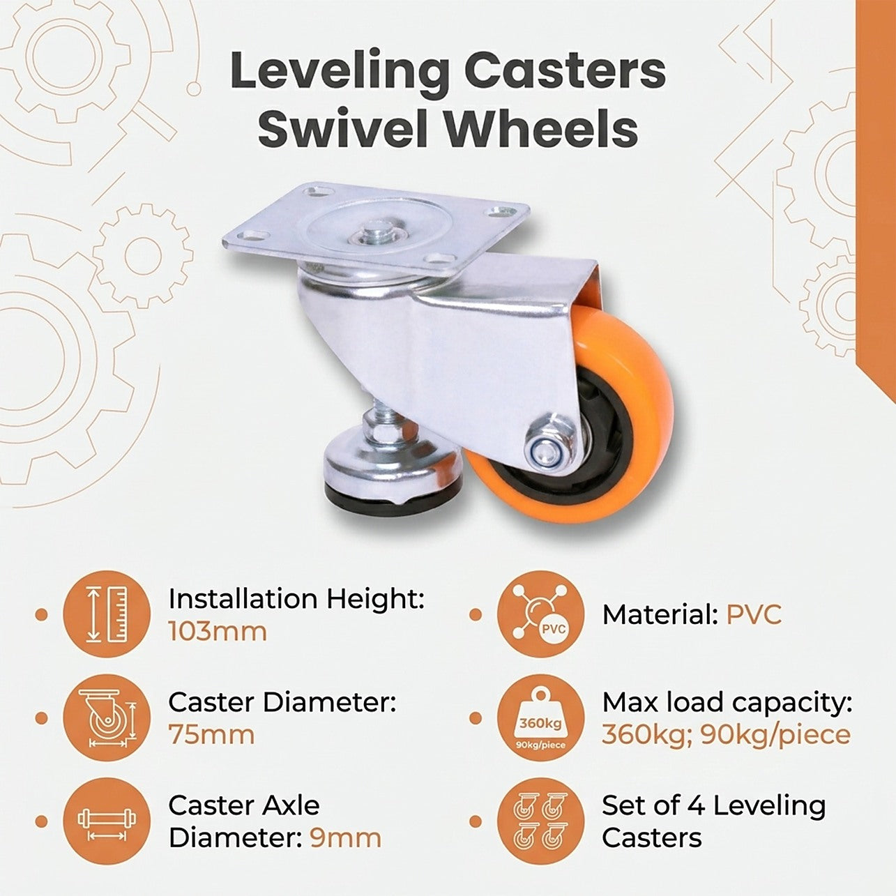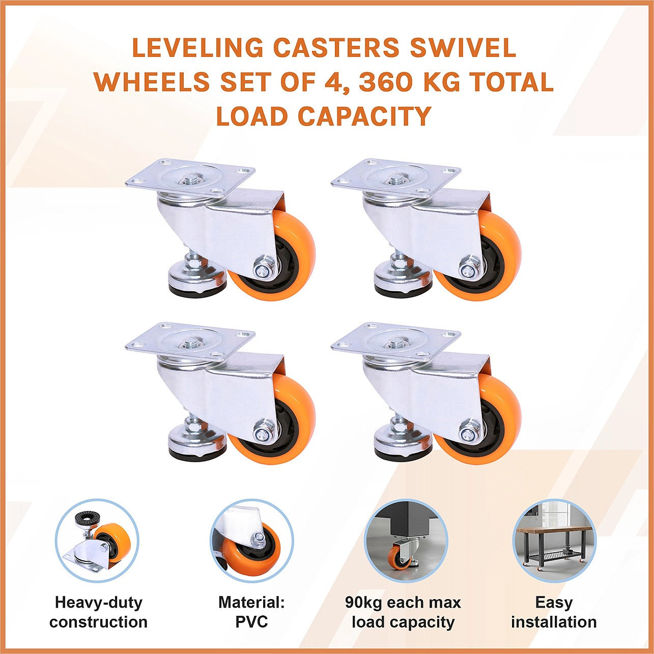 Leveling Casters Swivel Wheels Set of 4, 360 kg Total Load Capacity
