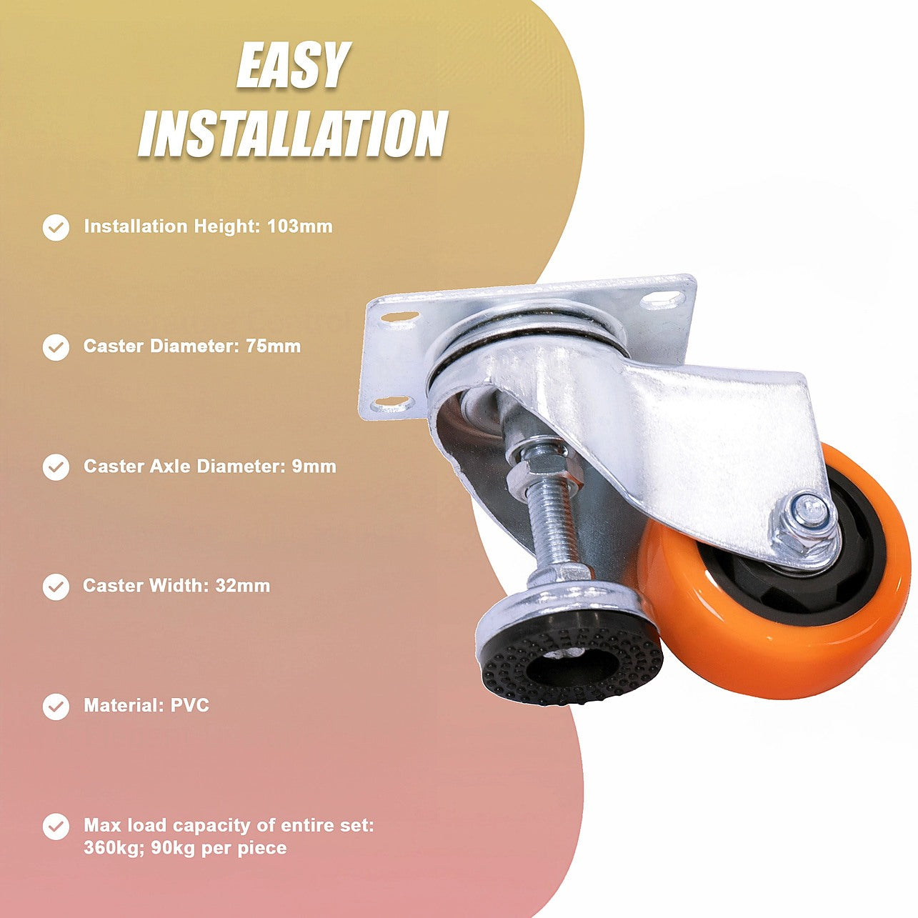 - Caster Diameter: 75mm