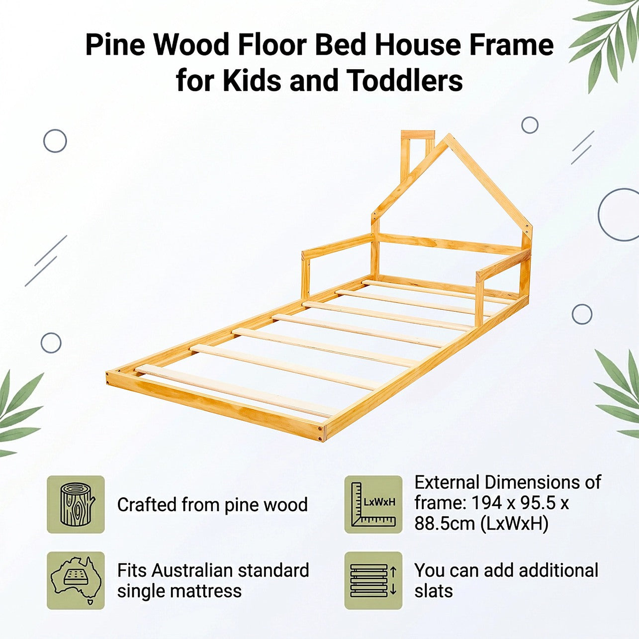 Customisable Finish – Can be stained to match your personal style or theme. You can also add wood slats as these improve air circulation between the mattress and the floor.