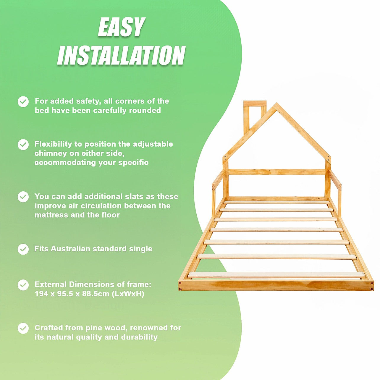 Solid Pine Wood Construction – Durable, natural finish that suits any interior