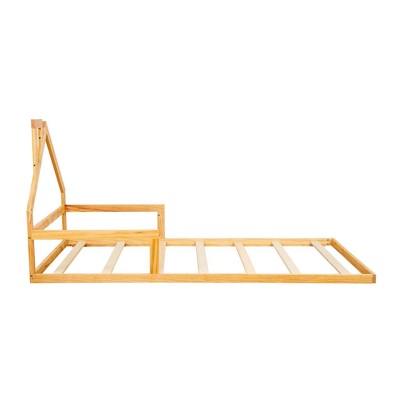Perfect for toddlers and young children, this bed offers both function and flexibility. It's delivered flat-packed for secure, damage-free transport and includes all necessary hardware for easy assembly at home. Whether you're designing a minimalist nursery or a playful toddler room, this low wooden bed is the perfect foundation for a cozy, creative environment.