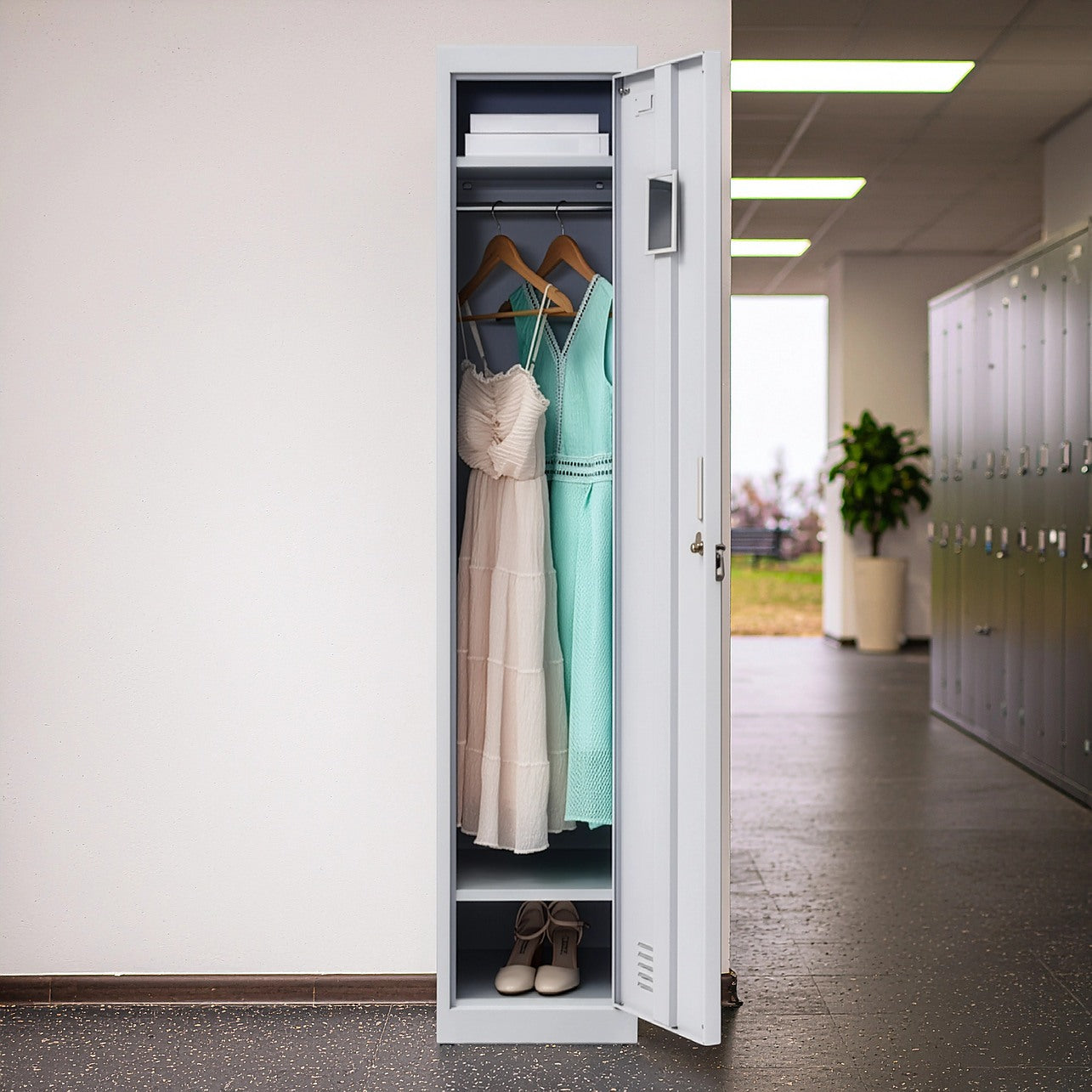 Lockable 1-Door Grey Locker for Home or Office - Standard Lock with 2 Keys