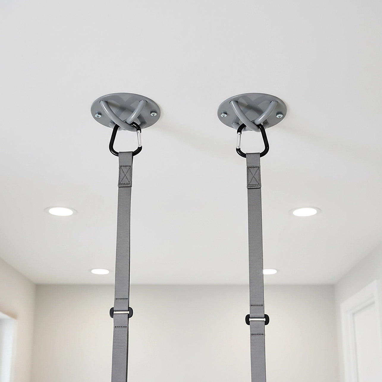 Manufactured from rigid steel with a durable powder-coated grey finish, each anchor mount is built for long-term performance and resistance to wear. The mounts are designed to fix securely into timber wall studs or ceiling joists, offering versatility for different workout setups and training spaces.