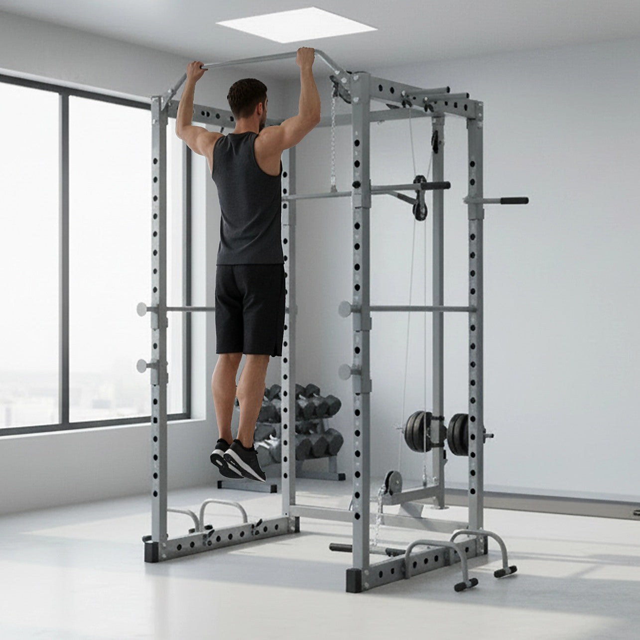 Designed to incorporate over 50 different exercises in one station, the possibilities are endless when it comes to this cage.