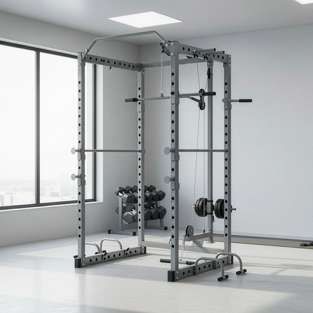 Power Rack Squat Cage with Lat Pulldown – Home Gym Fitness Stands for Strength Training