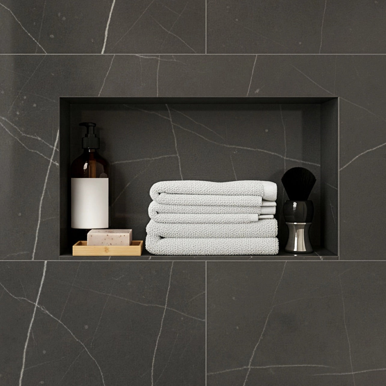 Constructed with a core of high-density polystyrene and a waterproof, liquid-applied sealant, this niche gives you a waterproof, ready-made substrate.