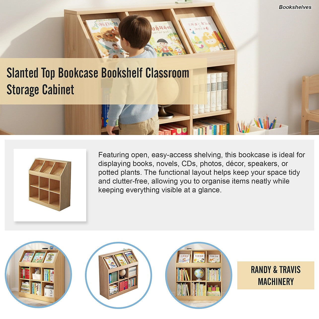 Slanted Top Bookcase Bookshelf Storage Cabinet for Classroom, Office or Home