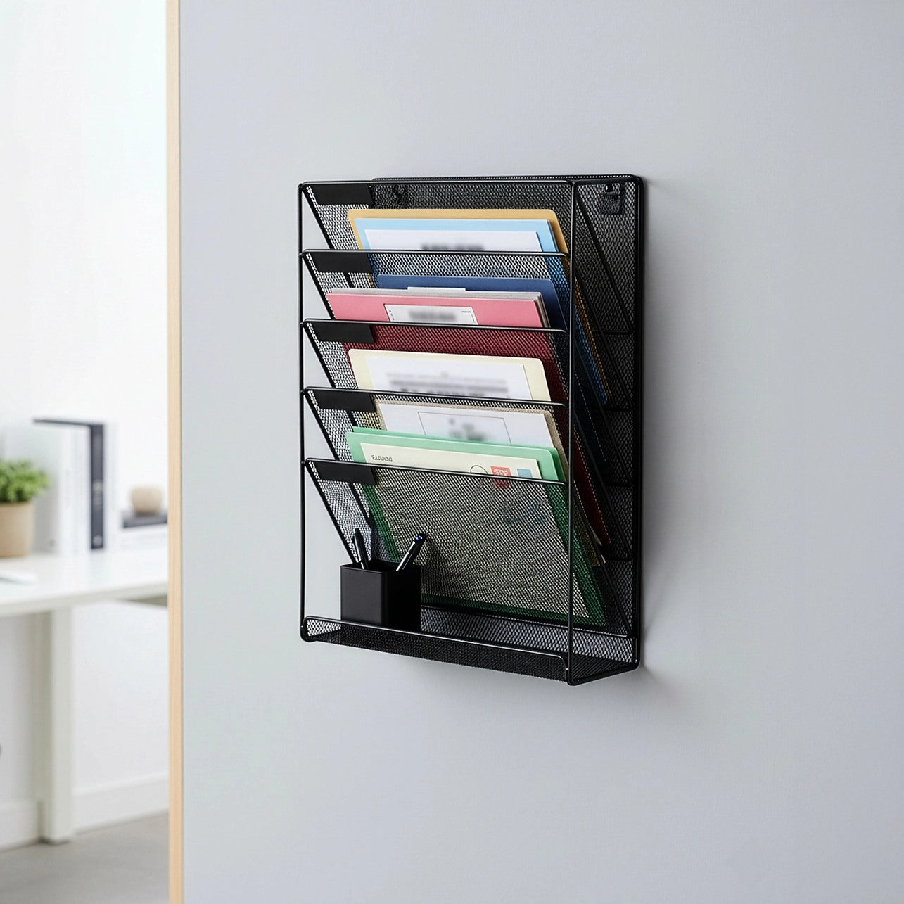 Durable and practical, the rack gives you five slots to store files you need to keep close at hand. Coated with a protective film that guards against rust, you'll enjoy this handy organizer for years to come.