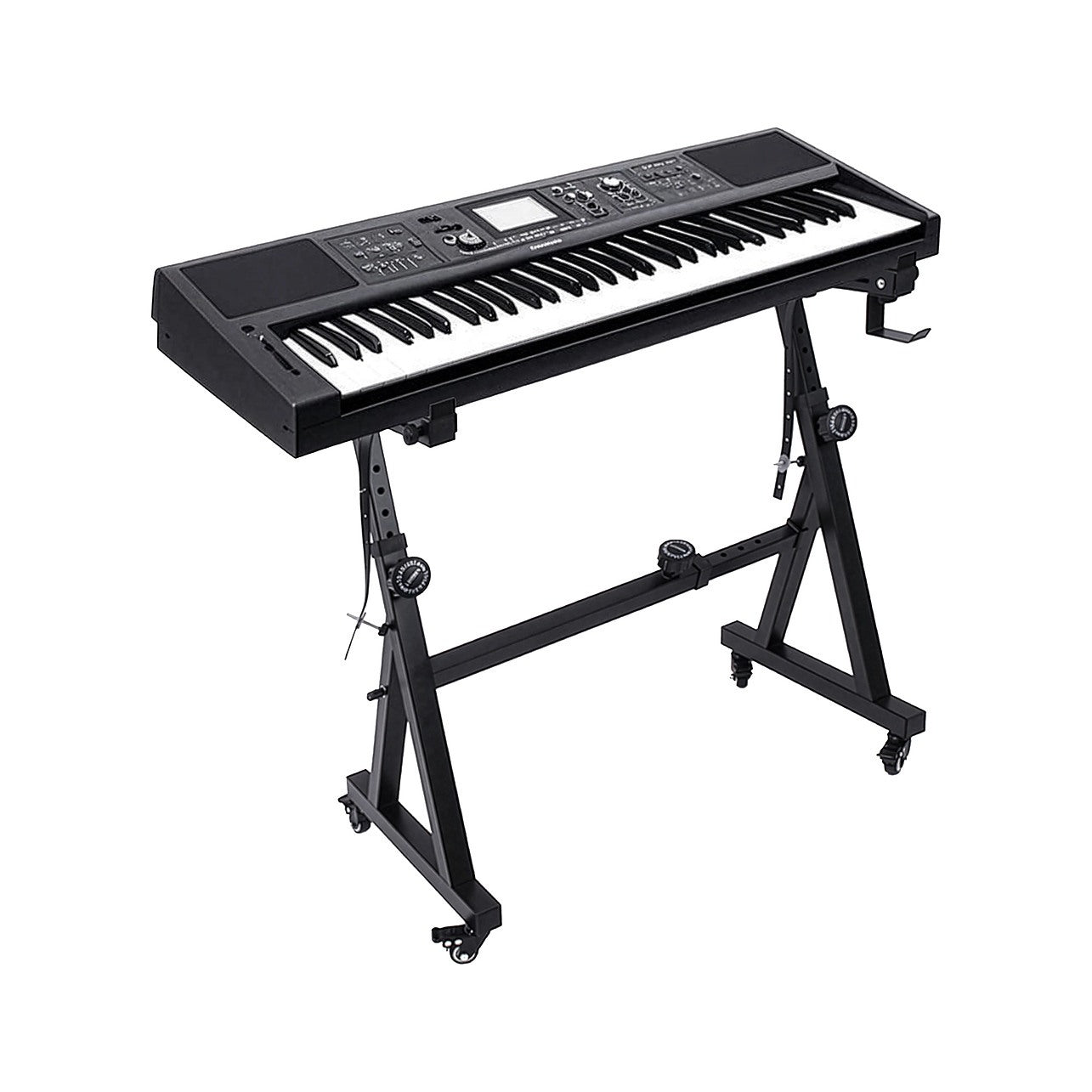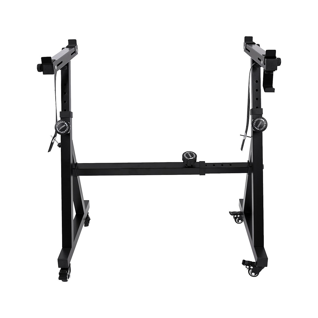 The fully adjustable width and height allow it to accommodate 54, 66, and 88-key keyboards effortlessly. Its lockable universal wheels ensure smooth mobility, while anti-slip footpads keep your stand secure during intense play.